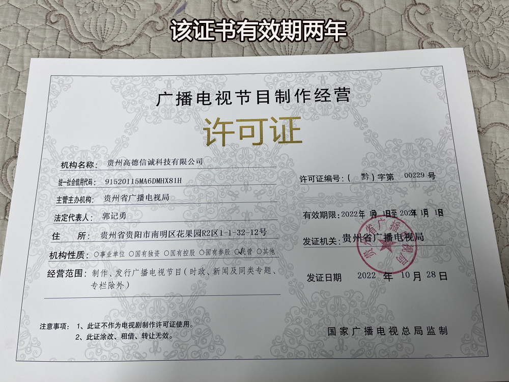 廣播電視節目制作經營許可證:(黔)字第00229號
